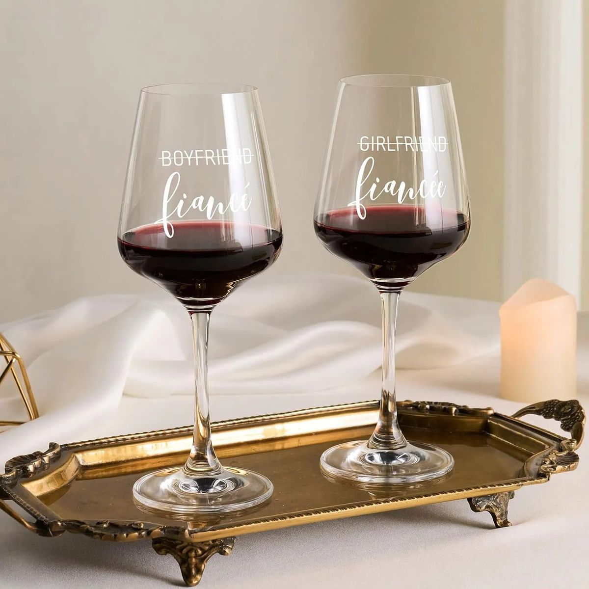 Celebrate love with our luxurious gift set, designed for engagements, weddings, and anniversaries. Includes Mr & Mrs crystal wine glasses, a polished wine opener, elegant stopper, and a hand-engraved wooden keepsake box. Each piece is securely cushioned in premium packaging-ready to gift instantly, no wrapping needed.Crafted by skilled artisans using traditional glassblowing techniques, these lead-free crystal glasses are 30% stronger than standard glass. Their flawless clarity enhances every sip, while the ergonomic stem ensures a comfortable grip. Dishwasher-safe for effortless care.